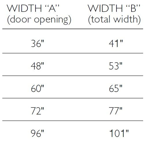 Available in many widths. Note, 36" and 60" widths are supplied in a 1 piece assembly. All other widths are supplied as 2 pieces.