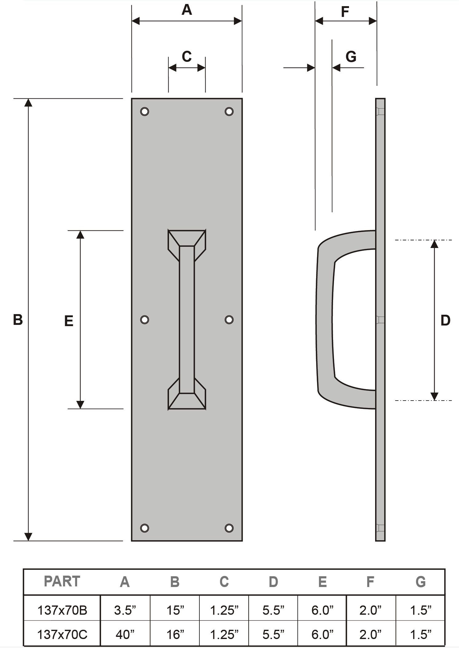 Rockwood 137x70 standard weight pull plate has a unique, simple pull bar and is ideal for use on architectural doors in high traffic areas. Variations of material, plate sizes and finishes are available for any door of your choice. For details and options, see below.