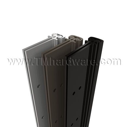 Continuous Hinges are designed to last the life of the building. The unique design distributes the weight of the door along the entire length of the frame. This Aluminum Geared continuous hinge utilizes a single gear section for the leaf and a separate gear section for the frame side of the door.