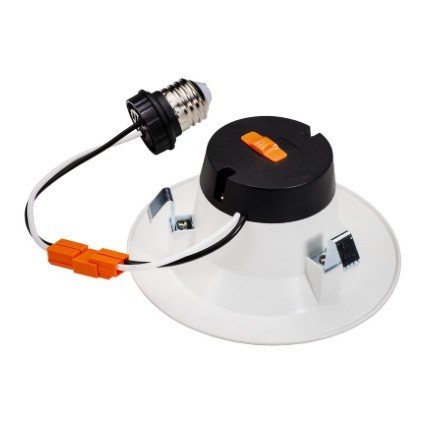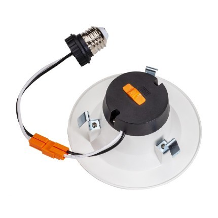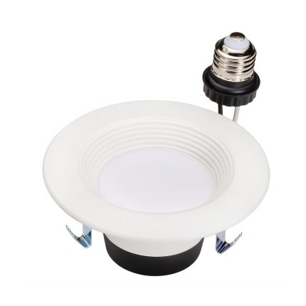 Topaz Performance Recessed Downlights, 4", CCT Selectable 7W, Baffle Trim offers a remarkable five option color correlated temperature selectable switch. This 6.5W versatile luminaire is an easily adaptable choice for retrofit and new construction applications, in commercial, residential and multi-family settings. Rated for use in insulated and non-insulated ceilings, it is easily installed with friction clips and comes equipped with quick-connectors and E26 adapter.