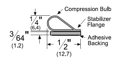 Pemko #HSS2000xS88 Adhesive Weatherstrip, 1/2" Wide Silicone and Intumescent Bulb