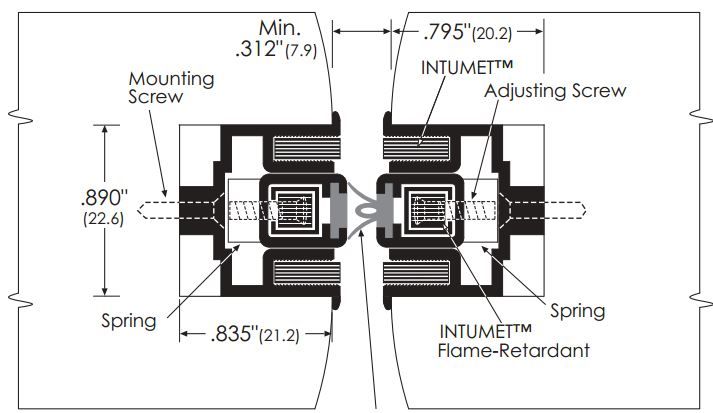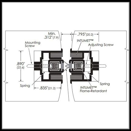 This specialty meeting stile utilizes Intumet™ intumescent material which expands when heated to prevent the spreading of fire. An adjusting screw and stainless steel spring permits the seal to be adapted to effectively close clearance gaps of varying sizes resulting from natural warping or inevitable shifting of the doors. These distinctive features assure fire and smoke protection, prevent sound from leaking in or out of a room, provide a weather seal, ensure privacy, as well as minimize the passage of light between the doors.