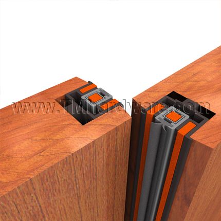 This Zero #3056FS-3557FS fully mortised, for double active doors specialty aluminum and silicone mortised meeting stile utilizes Intumet™ intumescent material which prevents the spreading of fire and effectively seals the gap between a pair of doors from the infiltration of fire, smoke, sound, light, drafts and insects. Available in various anodized aluminum finishes and is custom cut to size.