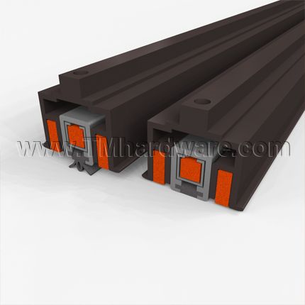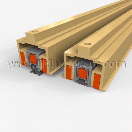 This meeting stile has two corresponding aluminum and silicone astragals. The inserts are manufactured from high quality, self-extinguishing, solid silicone. One lip-shaped seal projects out and compresses against a complementary solid insert and serves as an astragal between double active doors. Minimum required clearance space is .250".