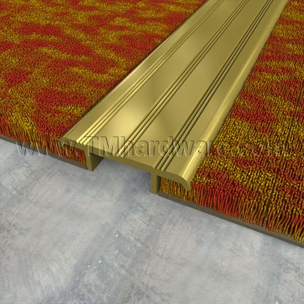 This fire rated and wheelchair accessible Carpet Divider conceals gaps and prevents fraying where two carpet edges meet. It also creates a barrier free transition between flooring surfaces and levels out slight height differences.