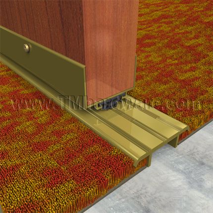 Additional uses include applications where carpet is installed under a fire door, which requires a carpet divider to create air space between flooring to maintain fire rating. It also provides a solid surface for a door sweep or automatic door bottom to close against.