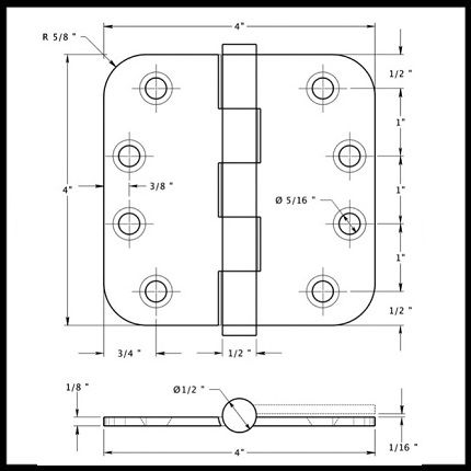 For additional hinges, see our Deltana Residential Full Mortise, 5 Knuckle, 4"X 4" Hinge with 5/8" Radius Corners DSB4R5-R
