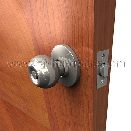 Design: Round Door Knob with push button mechanism to lock and unlock on the inside and outside.