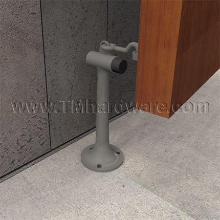 Installation:Â See product specs for installation instructions. This bumper is mounted to the concrete or wood floor allowing the door bottom to contact it, thereby protecting not only the door, but the wall and knob/lever as well. If mounting it near the wall, be sure to mount it far enough from the wall that the bumper makes contact before the knob/lever hits the wall.Â