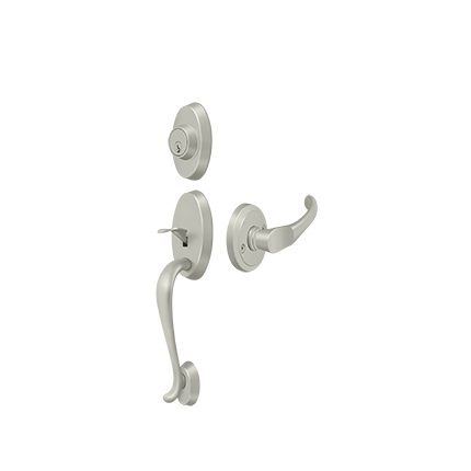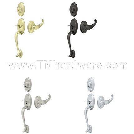 Deltana Riversdale PRRHCH Handlesets are part of Deltana's Elite Collection with ANSI Grade 2 Certification. Exterior has a Solid Brass Riversdale Thumbpress with Schalge C Single Cylinder Deadbolt, while interior has a Chapelton Lever. Available in a selection of finishes with Entry Function or as a Dummy Trim option.