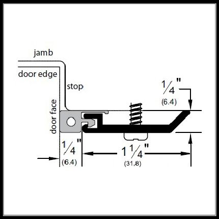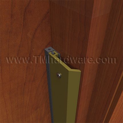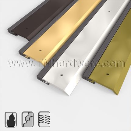 This gasketing weatherstrip is applied along the header and jamb of a door frame to seal the gaps along the perimeter of the door. It is fitted with a high quality sponge seal which prevents infiltration of  fire, smoke, sound, drafts and light. Casing is available in four finishes and is custom cut to size.