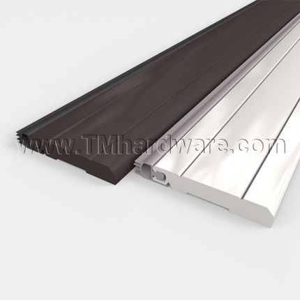 This Heavy Duty Door Gasket is fitted with a Eco-V Vinyl Bulb seal with fingers which seals the gaps around the door to prevent infiltration of light, dust, drafts, moisture, sound and insects. The door gasket is designed to be applied to the Header only, see below for corresponding jamb piece. Available in two aluminum finishes and is custom cut to size.