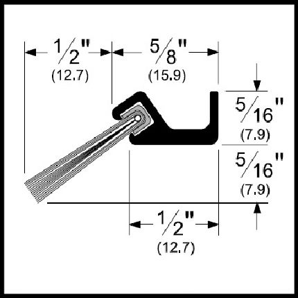 The 35º angled flange on this gasket provides the best contact with the brush and door surface which greatly reduces infiltration of light, air, wind, rain and snow. It also prevents heat loss and penetration of smoke and. Available in three anodized finishes and is custom cut to size.