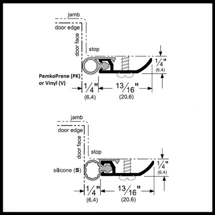 Seal Options:Â This product can be purchased with a PemkoPreneâ„¢, Silicone or Eco-V (Vinyl) Insert. Silicone has the best overall performance and should be used in high performance situations, especially those involving continuous exposure to extreme heat/cold or frequent cleaning with disinfectant. PemkoPreneâ„¢ can be applied to general gasketing situations, and locations with frequent use. Eco-V is comparable to vinyl (a lower grade rubber), though it is a newer, greener and more environmentally friendly version and surpasses the quality and durability of standard vinyl. For more details see Understanding Rubber Seals.