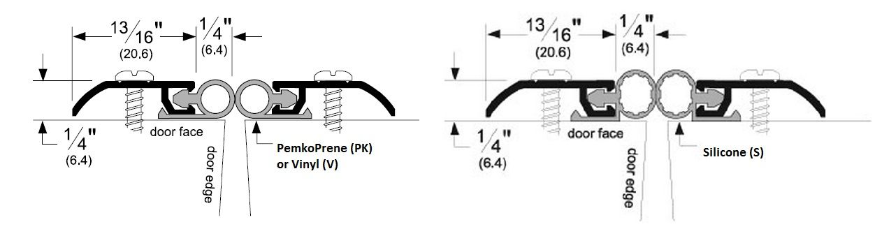 This aluminum casing and rubber seal can be applied as a door gasket or meeting stile. Its .25" rubber bulb will create a seal that will prevent infiltration of water, dust, drafts, fire, smoke and air. Available in many finishes that are guaranteed to blend unobtrusively into your door, and with various rubber seals.
