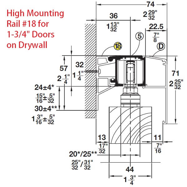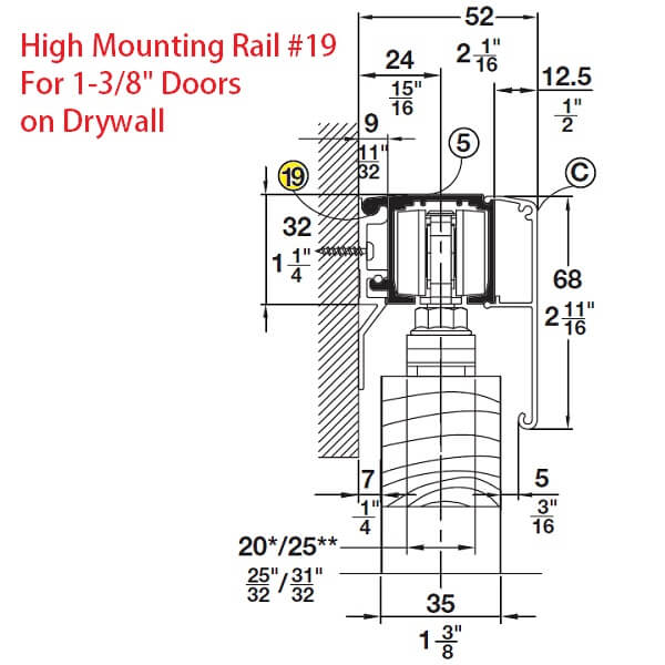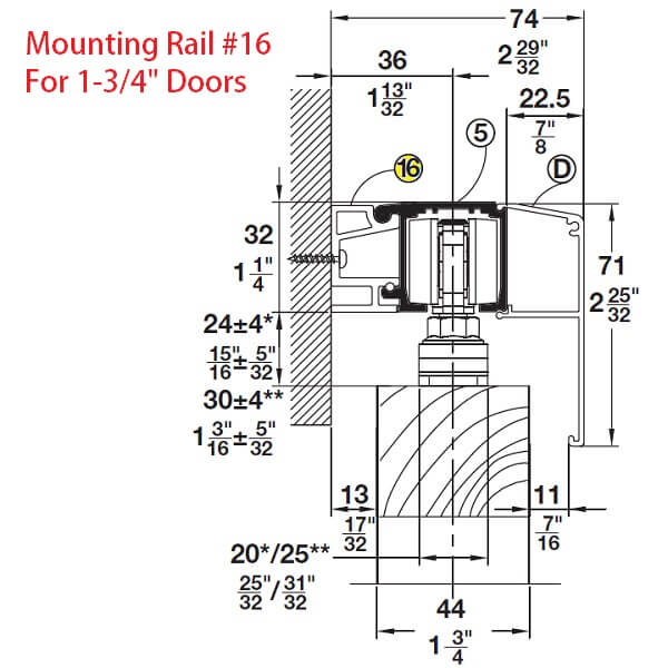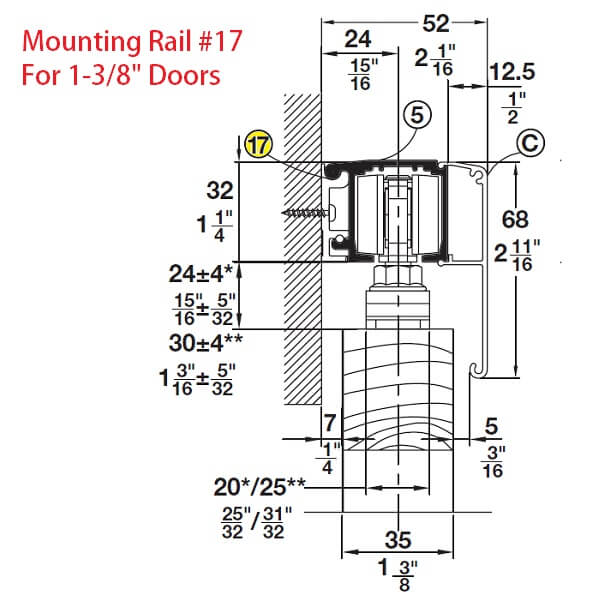 Mounting Rail TypeFor 1-3/4" Doors (#16), For 1-3/8" Doors (#17), For 1-3/4" Doors on Drywall (#18), For 1-3/8" Doors on Drywall (#19)