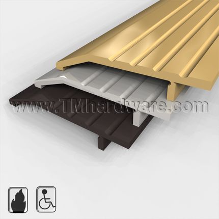 Half Thresholds corrects offsets in floors and removes the tripping hazards associated with changes in floor surface heights. This model is often used when a threshold is required to meet carpet on one side.