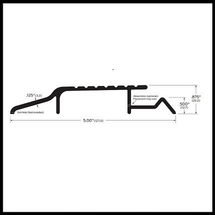 This Zero #175B Interlocking Threshold, compatible with an in-swing door, and perfect for an exterior door, is fitted with a water return and weep hole which drains water. It is Fire Rated and will provide a strong seal against dust, drafts and water infiltration. Available with options of epoxy abrasives and full body strength. Length is custom cut to size.