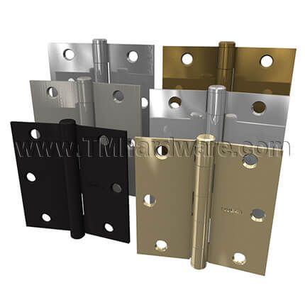 The Ives 1010RP Hinge is made from 1040 steel and features a button non-rising pin and caps. This residential hinge is 3.5" x 3.5" and has squared corners. Recommended for doors weighing less than 70 lbs and not exceeding 3' x 7'. For low frequency residential applications. Not for use with a door closer.