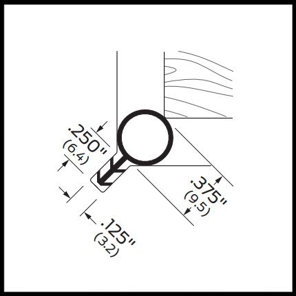 To install, simply insert the extending fin into a .250" x .125” kerf, or groove, and push in with the aid of a putty knife to get a tight fit (see product specs).