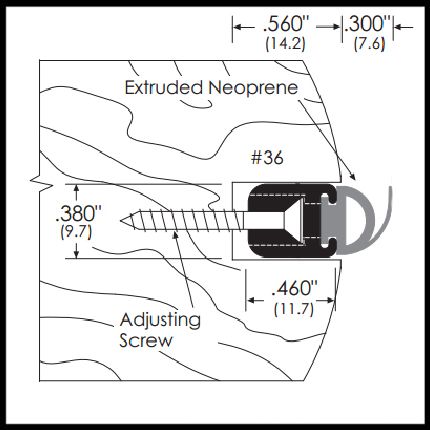 - Â #36 Neoprene Bulb: Extruded Neoprene bulb with an additional fingered design. The finger ensures a reliable seal, even when the door is misaligned due to poor installation or natural warping.