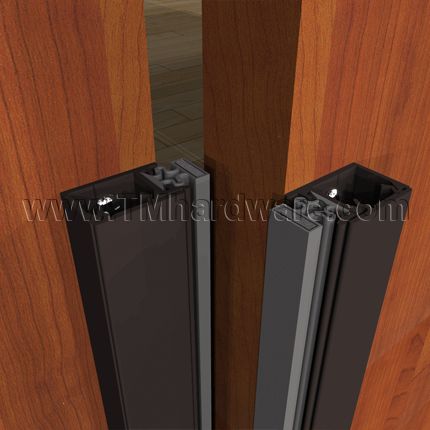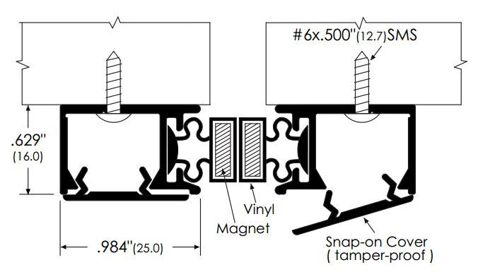 These meeting stiles are designed to be applied to double active doors. The two magnetic seals come together to form a protective barrier for smoke. It is also covered in a vinyl extrusion for added protection. The aluminum casing has a tamper-proof snap-on cover which eliminates exposed mounting screws to maintain a clean smooth look. This product can also be applied as a door gasket, see our Door Gasket, Magnetic with Cover. Available in two anodized finishes and is custom cut to size.