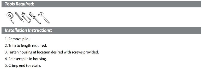 Installation Guide and screws provided. Screws are colored to coordinate with casing.