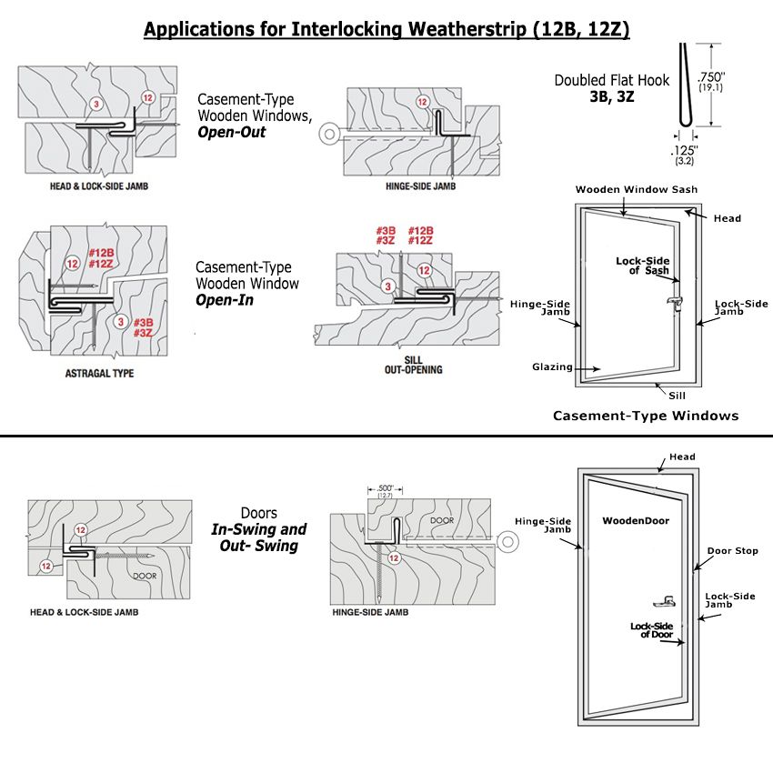 - Metal Interlocking and Latching Weatherstrip, for Wood Doors and Windows