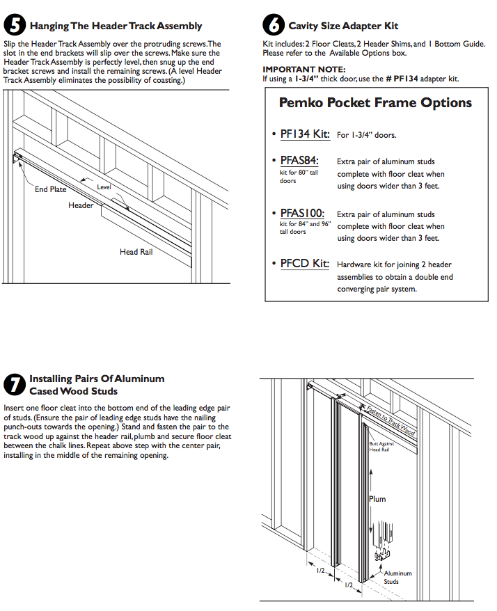 1) PF134KIT: MUST use to allow pocket frame kit compatible with 1-3/4” thick doors.