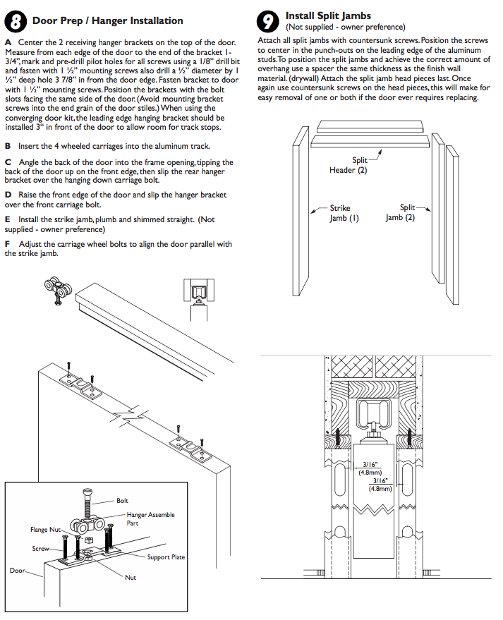 *Pocket Frame Conversion Kit: Standard kit is designed for 1-3/8" Doors. Pocket frame conversation kit can be used to convert to 1-3/4" thick doors. Compatible ONLY for 2x4 stud assembly.