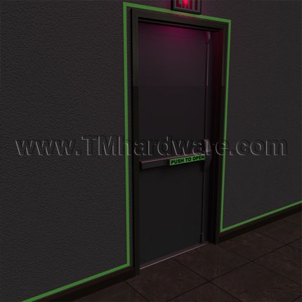 Photoluminsecent systems facilitate safe emergency exists when power systems have failed. They are designed for compliance with Building Code Standards RS 6-1/1A of New York City Building Code Section 27-383(b) for photoluminescent exit path marking adopted in May 2005, for both new construction and renovation. This Photoluminsecent Door Marking is required for final and intermediate exit door frames and is applied to either the face, top of the exit bar or on the door directly above the bar.