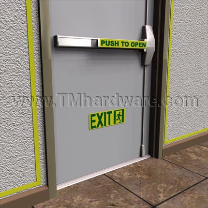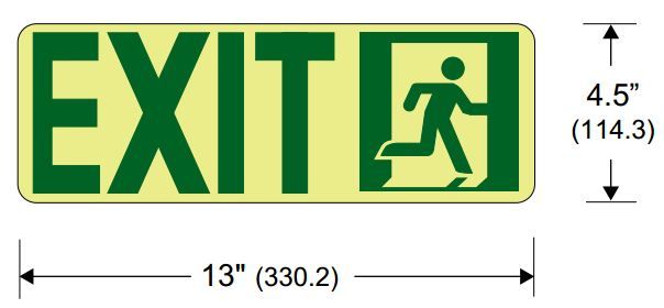This photoluminescent exit marking aids in safe evacuation in case of a black out. It is easily applied to exit doors with a self-adhesive backing. They are designed for compliance with Building Code Standards RS 6-1/1A of New York City Building Code Section 27-383(b) for photoluminescent exit path marking adopted in May 2005, for both new construction and renovation.