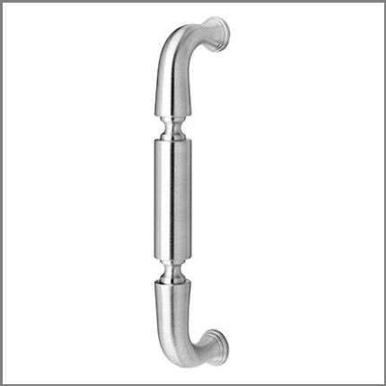 Rockwood #148 cast brass door pull has an elegant design and is applied with thru bolt mounting onto wooden or metal doors of 1.75" thickness. Variety of finishes are available, see below.
