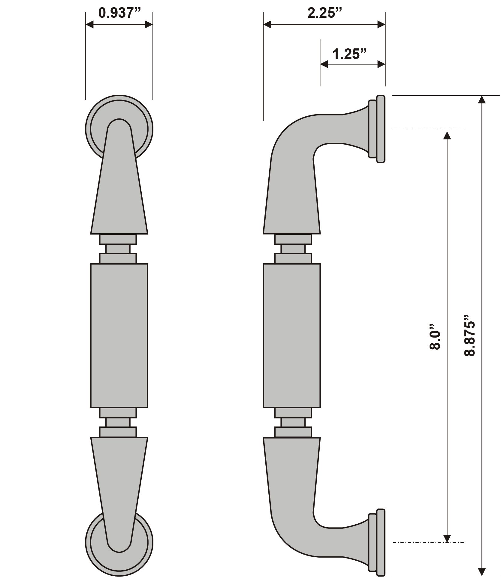 Rockwood #148 Decorative Cast Brass Door Pull, 8" CTC