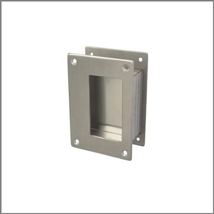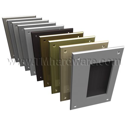 Rockwood's 94BTB Pair of flush pulls with back to back mounting, is square cornered and extra heavy duty (.125" thick). Pair is small and has a neat look on all doors. Available in many finishes and materials, the size of the this pull is 3.5" x 5". See below for details and options.
