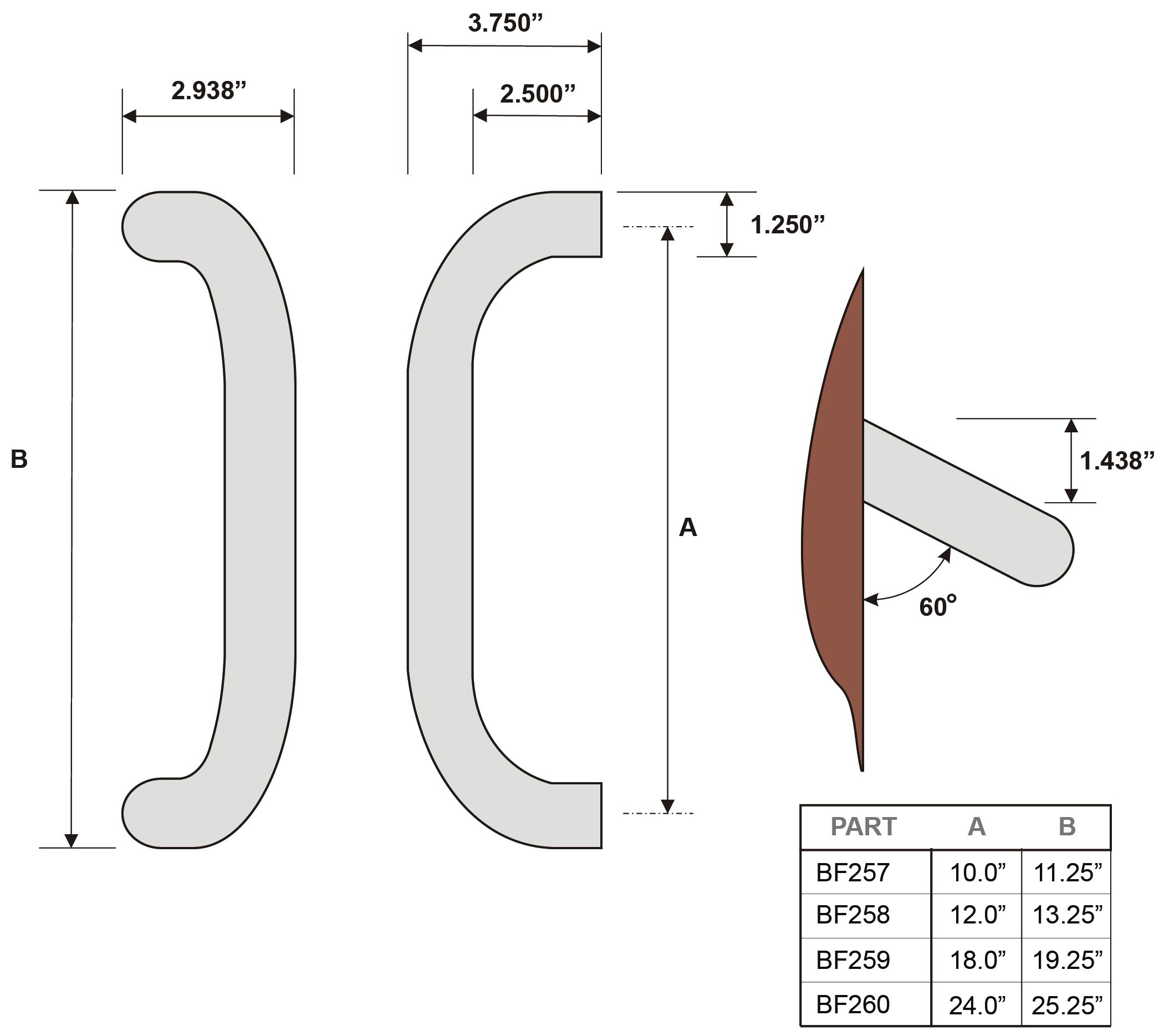 | Â BF260 | Â 1.25" | Â 24" | Â 25.25" | Â 3.75" | Â 2.5" | Â 1.3125" | Â 13.3 lbs |