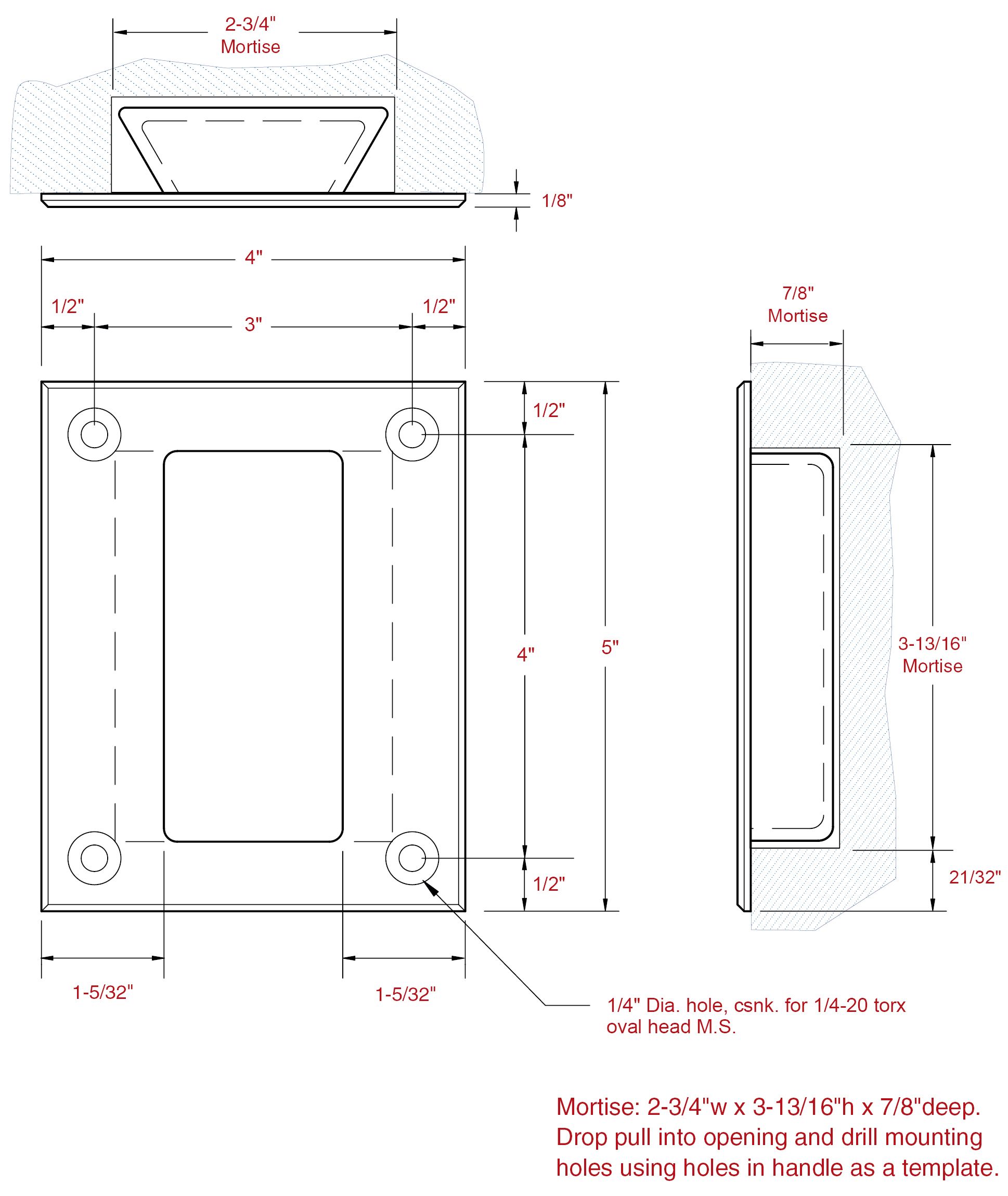 Mortised Channel:Â 2-3/4"W x 3-13/16"H x 7/8"Deep
