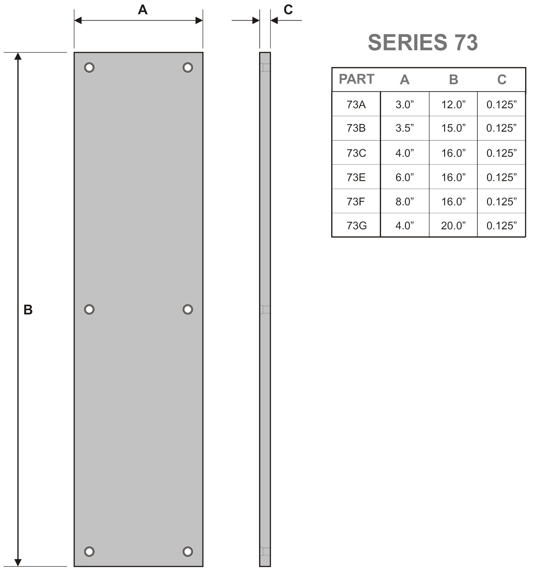 Rockwood 73 Push Plate, Square Corner, Extra Heavy Duty, .125" Thick