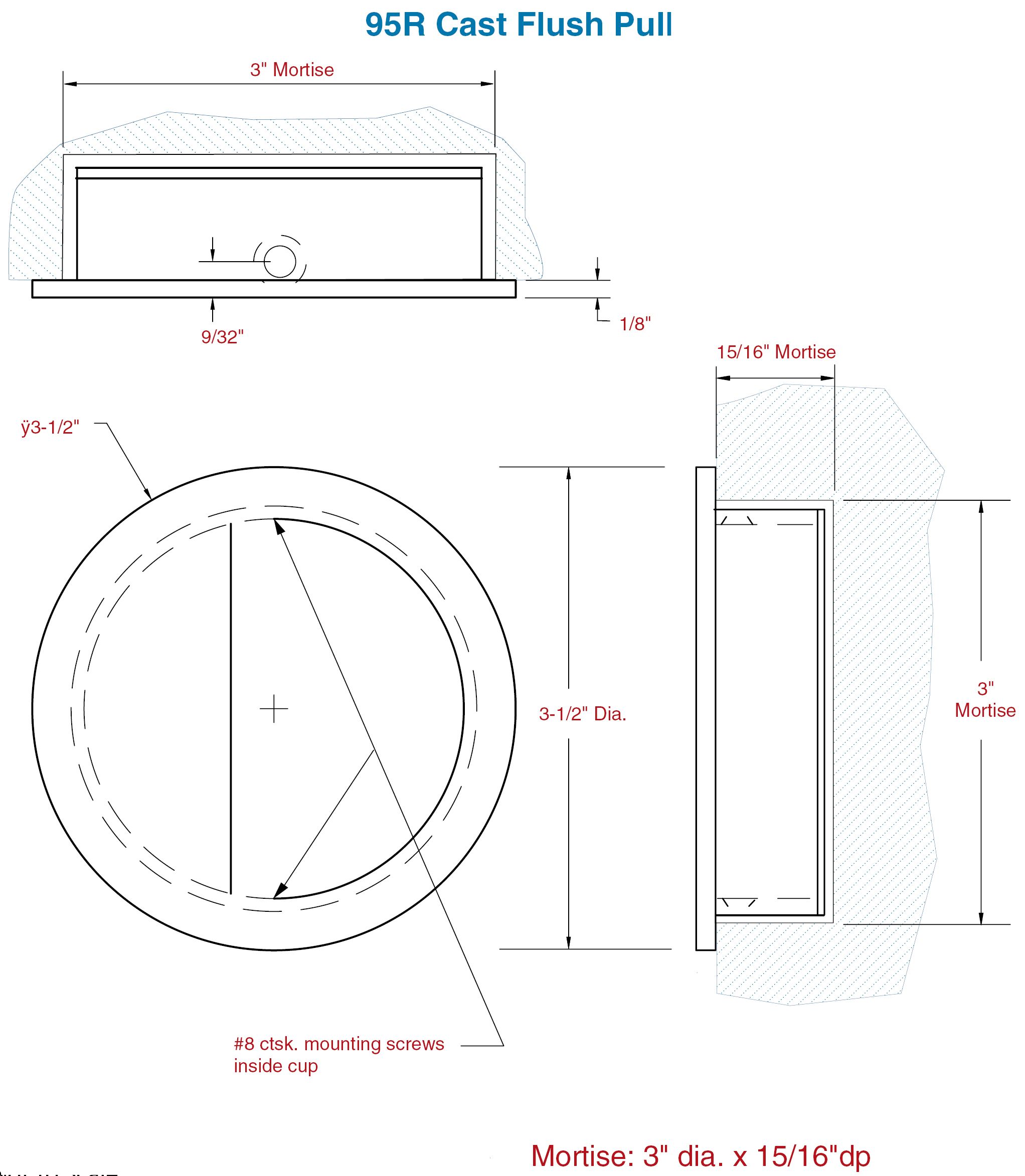 Rockwood 95R commercial grade and long lasting flush pull. It is a cast brass high quality flush pull, and great for use on all doors in high traffic areas. Small and round, pull looks really neat and unique on any door of your choice.