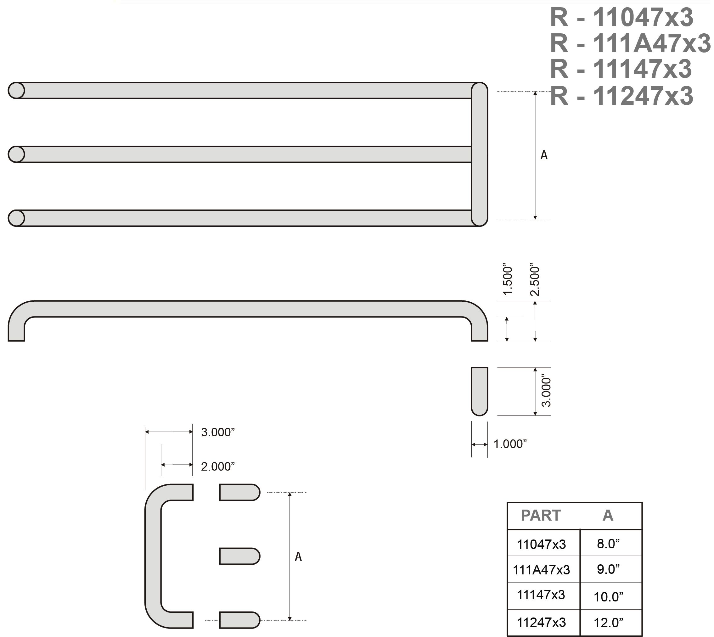 Rockwood 11047-3 / Series 47 Straight Triple Bar Set, up to 12" CTC
