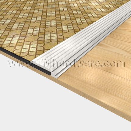 Unconcealed joints or seams between adjoining floor surfaces creates an unsightly and often unsafe transition. This .75" wide aluminum seam edge is designed to protect and create a neat trim for exposed edges of linoleum, tile, wood, and other standard floor coverings. Can be used for residential, commercial and consumer applications. The fluted saddle design ensures a non-slip environment for enhanced safety.