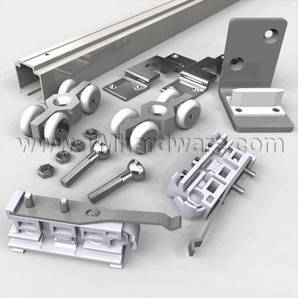Sliding Door System for doors weighing up to 180 lbs. Can be installed in an overhead or side wall mount. This series offers a side wall bottom mortise guide which allows carpet to be replaced without removing the door.