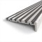 TRACTION TREAD GLOW: Rubber or Abrasive Traction Tread integrated with photoluminescent tread. For indoor applications. These non-slip stair nosings satisfy New York City Standard RS 6-1/1a and other building code standards for photoluminescent exit path markings. Profiled grooves with rubber or epoxy inserts provide durable, attractive surfaces that do not collect dirt or water. One inch wide photoluminescent tread is integrated in the outer 2 grooves along stair edges. Available only in standard aluminum finish.