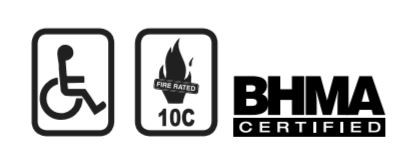Compliance: ADA / Wheelchair Accessible, BHMA Certified, Fire Rated, UL Listed