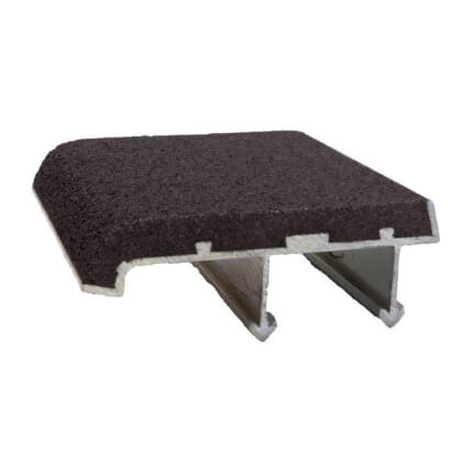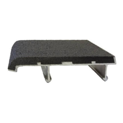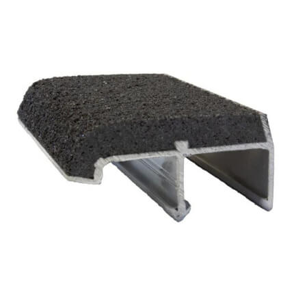 Abrasive anti-slip filler extends over the entire radius of the curved nosing to provide a safe walking surface.