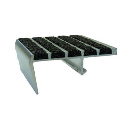 Wooster's Supergrit W238 No-Slip Stair Nosing is for New Steel Pan Concrete Steps with a 7° sloped riser. Abrasive anti-slip strips are embedded in the surface of the tread for improved walking safety. The sloped leg protects the riser.