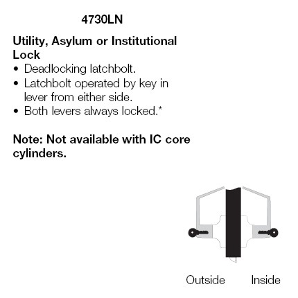Accentra 4730LN Utility, Asylum or Institutional Lever, Grade 1 - Custom Options