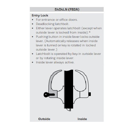 - Either lever operates latchbolt (except when outside lever is locked from inside).