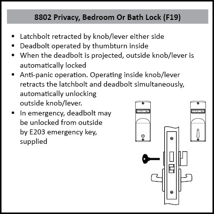Accentra (Formerly Yale) 8802FL Mortised Privacy, Bedroom Or Bath Lockset is designed and manufactured for uncompromising strength and durability in a range of commercial applications. This lockset is exceeds ANSI / BHMA Grade 1 Standards and 3 Hour UL-Fire Rated.
