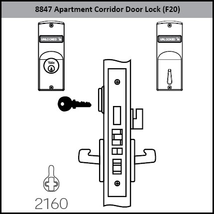 Accentra (Formerly Yale) 8847FL Mortised Apartment Corridor Lockset is designed and manufactured for uncompromising strength and durability in a range of commercial applications. This lockset is exceeds ANSI / BHMA Grade 1 Standards and 3 Hour UL-Fire Rated.